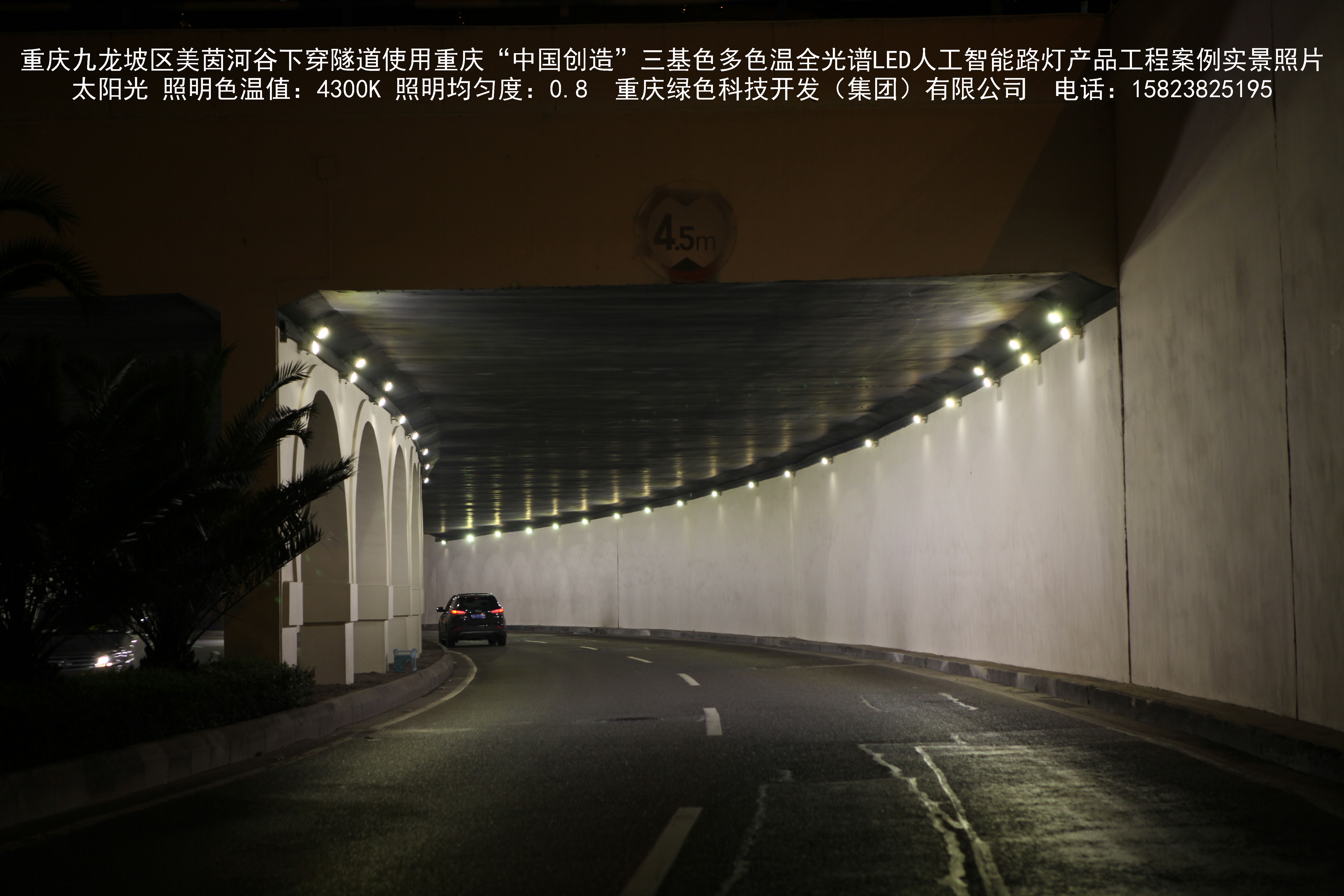 2018年9月,重慶市九龍坡區(qū)城市管理局使用我司自主研發(fā)制造的重慶“中國(guó)創(chuàng)造”三基色多色溫全光譜LED人工智能隧道燈系列產(chǎn)品,實(shí)施了美茵河谷下穿隧道市政設(shè)施品質(zhì)提升工程。該工程已全面竣工。工程實(shí)施后,極大地提高了城市照明清晰度、燈光均勻度、舒適度。通過(guò)智能終端實(shí)現(xiàn)單燈感知、線纜防盜報(bào)警,與原高壓鈉燈相比,節(jié)能率60%以上,有效解決了關(guān)閉控制回路或間隔關(guān)燈方式造成的照明暗區(qū),確保行人和車輛通行的安全,實(shí)現(xiàn)城市路燈照明系統(tǒng)的智能化管理,推進(jìn)了智慧城市建設(shè)。