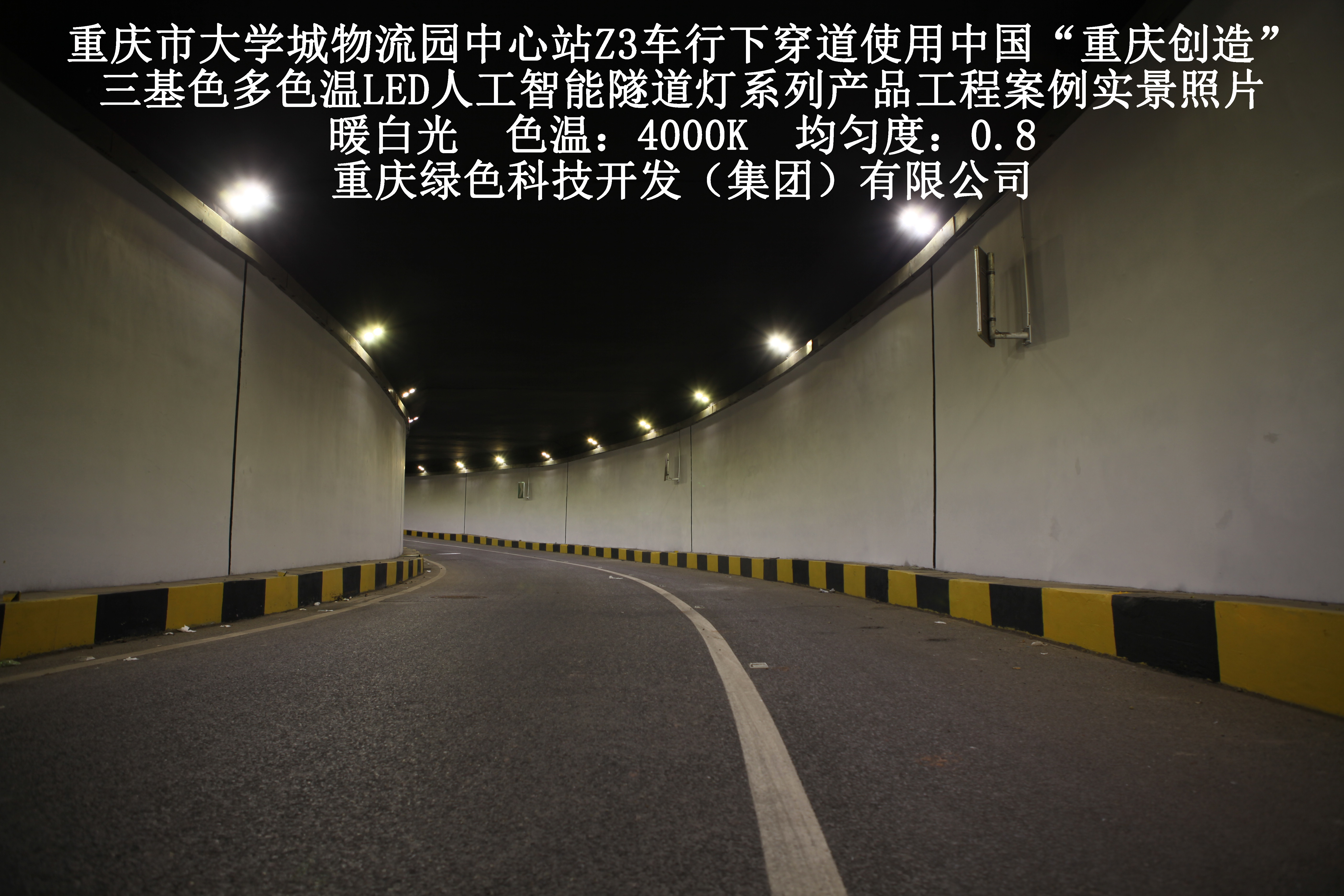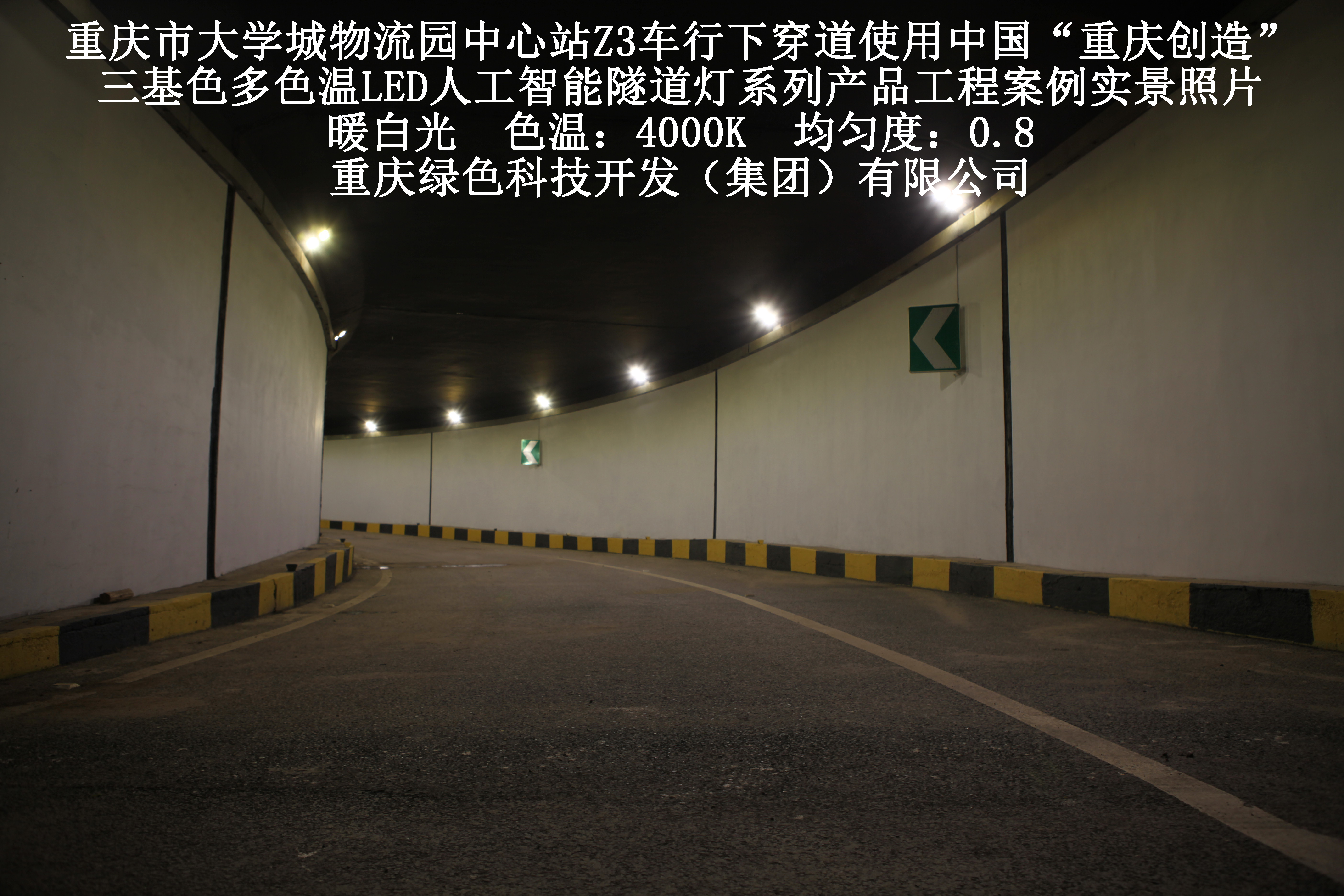 2019年3月,重慶市大學城物流園中心站Z3車行下穿道使用我司自主研發(fā)制造的,重慶“中國創(chuàng)造”三基色多色溫LED人工智能隧道燈系列產(chǎn)品,實施了市政設(shè)施品質(zhì)提升工程(工程案例實景照片附后)。此項目的實施,極大地提高了隧道內(nèi)照明清晰度、燈光均勻度、舒適度及照明安全性,實現(xiàn)了隧道照明系統(tǒng)的智能化管理。
