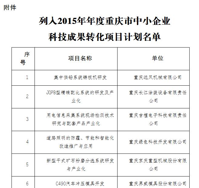 多年以來,重慶城建經(jīng)濟(jì)(集團(tuán))重慶綠色科技開發(fā)有限公司與重慶房地產(chǎn)職業(yè)學(xué)院進(jìn)行產(chǎn)學(xué)研合作,堅(jiān)持創(chuàng)新發(fā)展,研發(fā)了“中國(guó)創(chuàng)造”“互聯(lián)網(wǎng)+多色溫防霧霾亮度可調(diào)智能控制系統(tǒng)及LED智能燈具”技術(shù)。該技術(shù)自2015年7月22日申報(bào)2015年度重慶市中小企業(yè)科技成果轉(zhuǎn)化項(xiàng)目計(jì)劃后,現(xiàn)已于2015年12月21日成功列入科技成果轉(zhuǎn)化項(xiàng)目計(jì)劃。通知文件如下:
