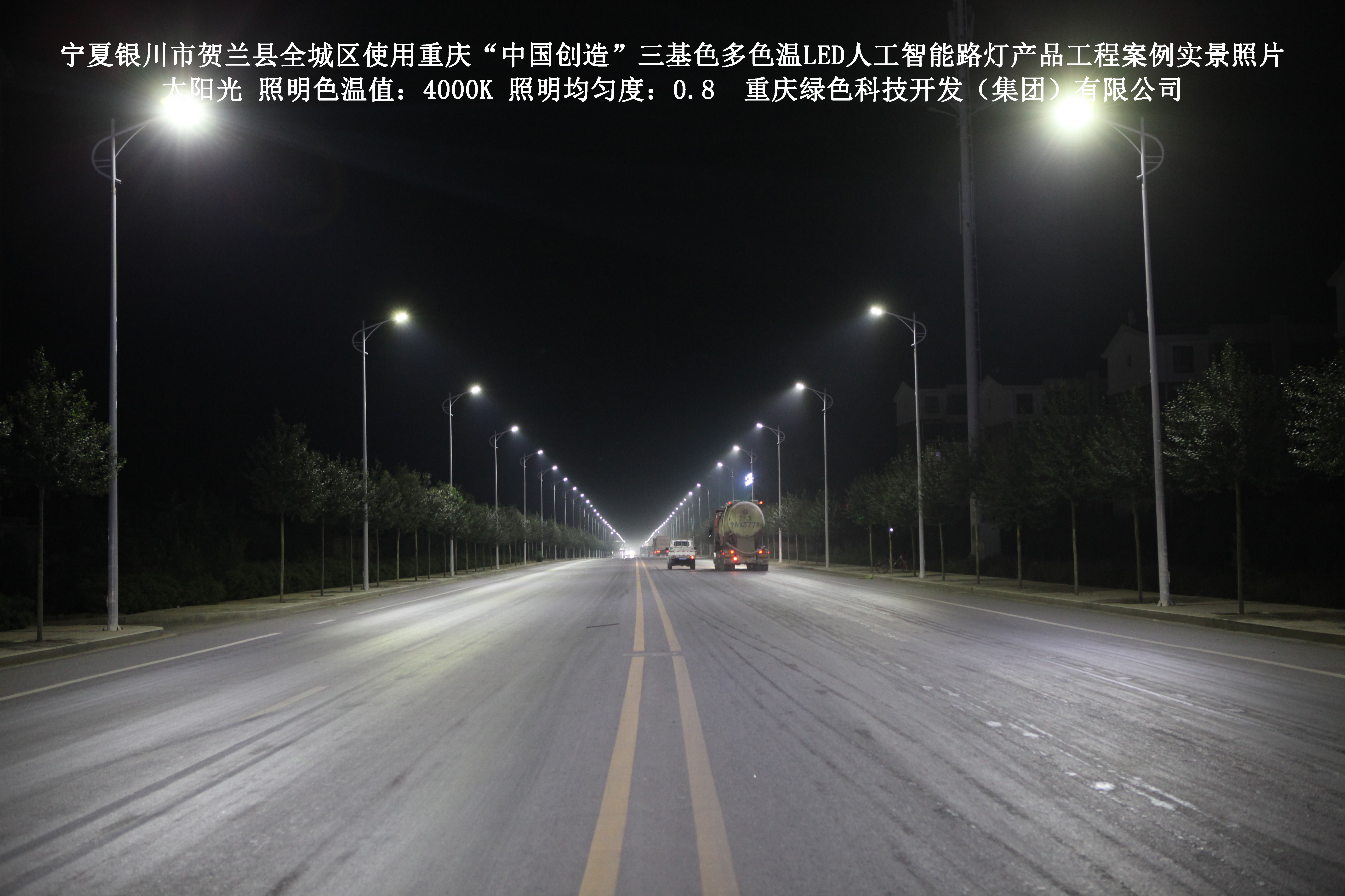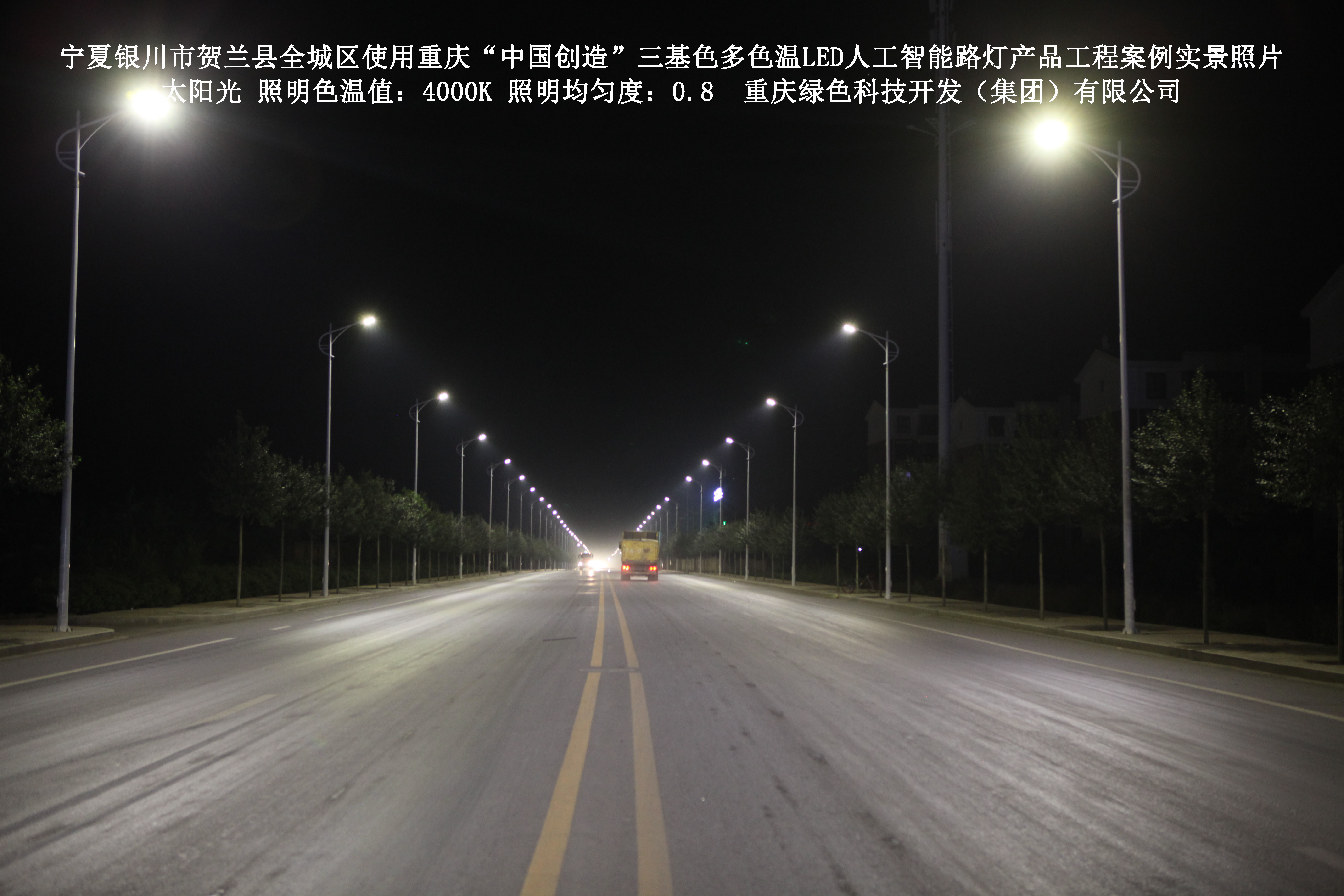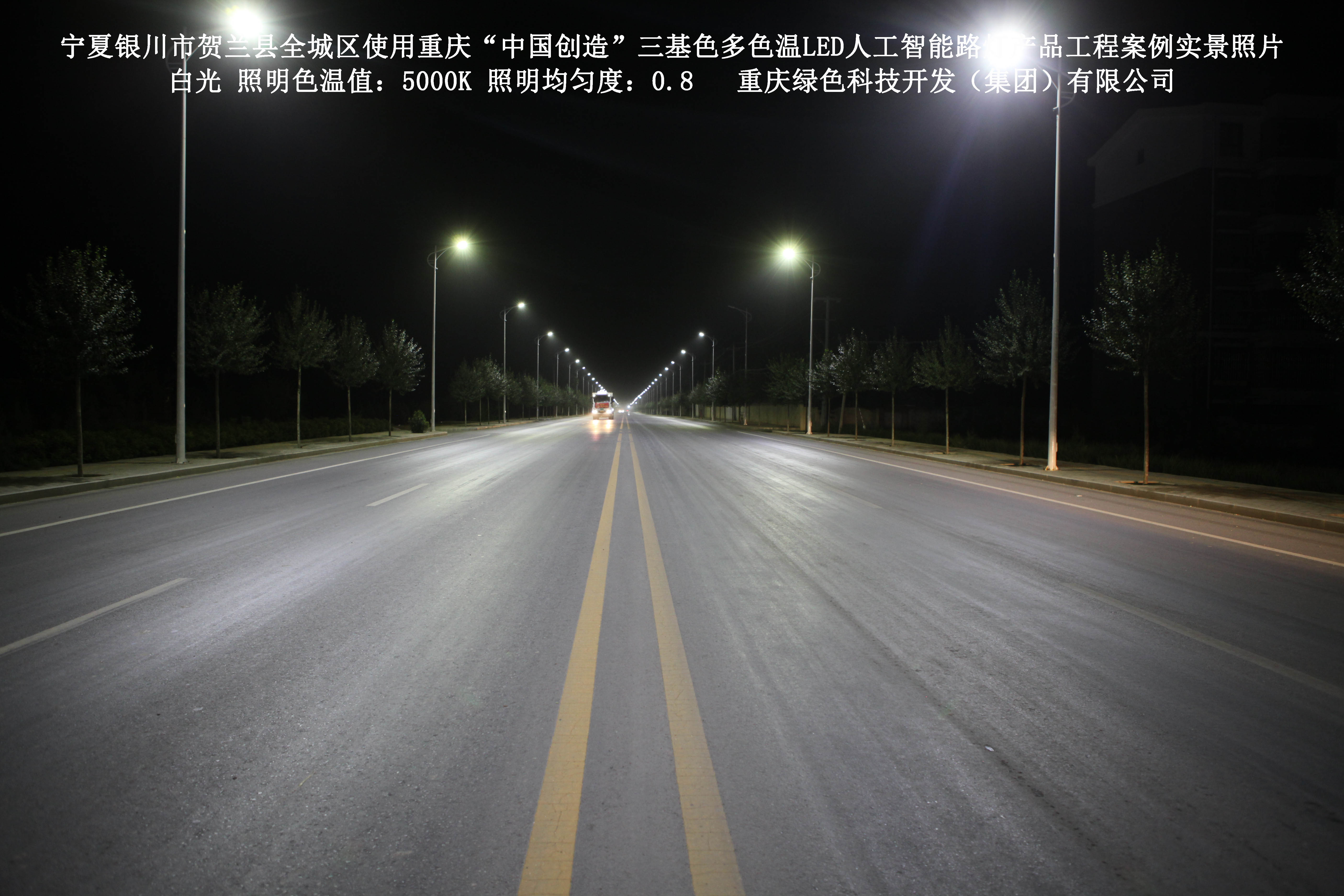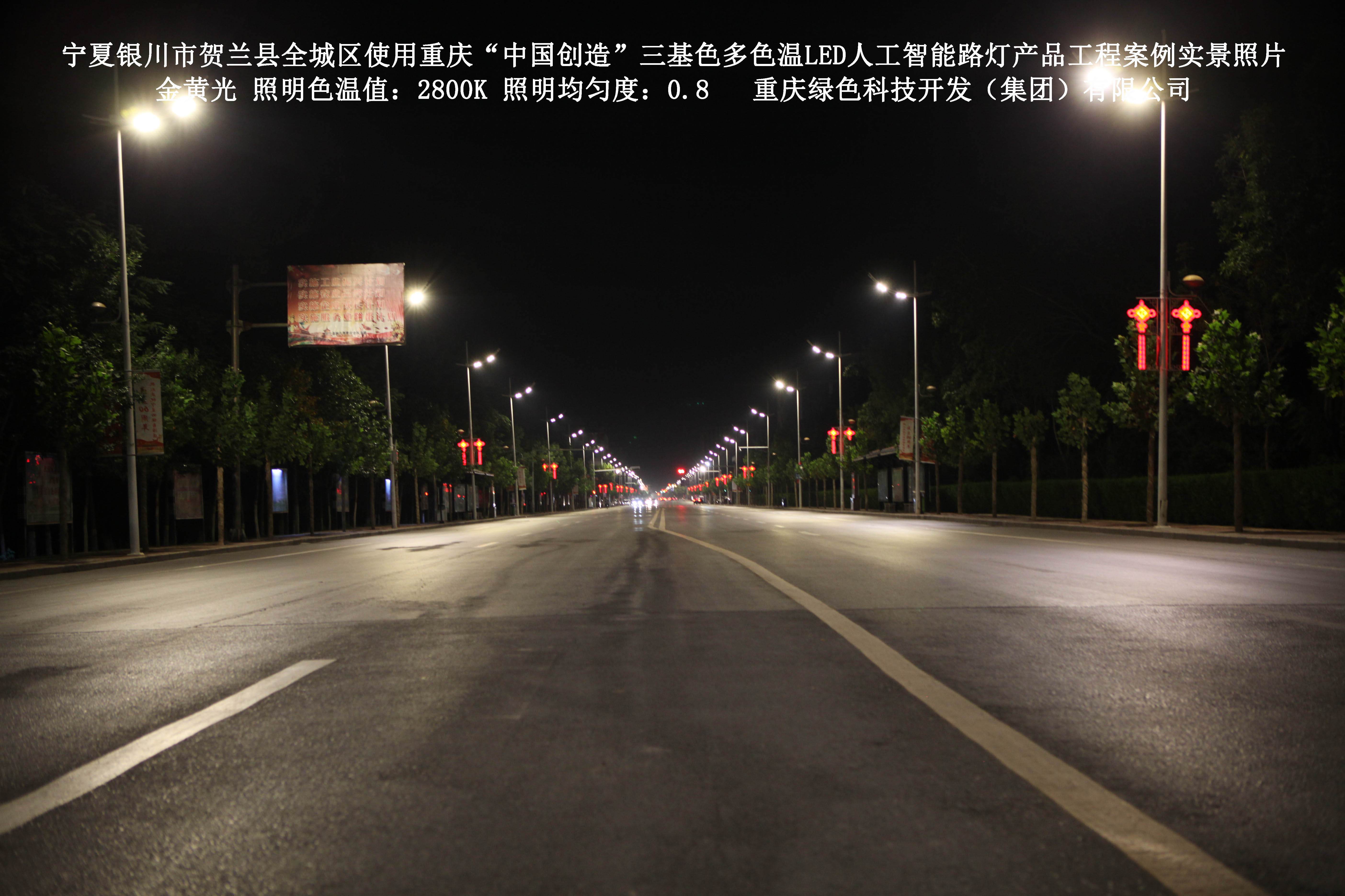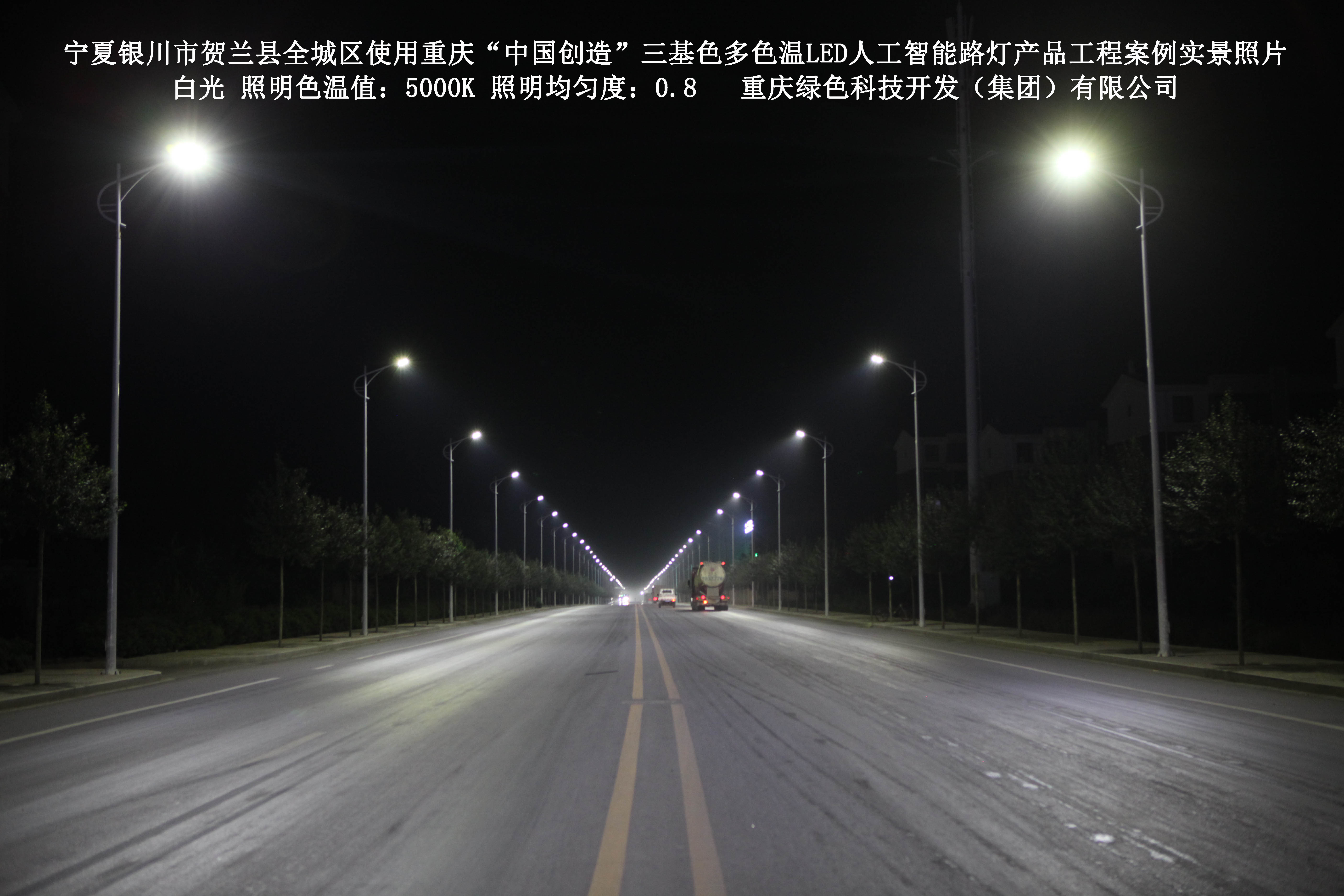 寧夏銀川市賀蘭縣全城區(qū)使用我司研造的重慶“中國創(chuàng)造”三基色多色溫