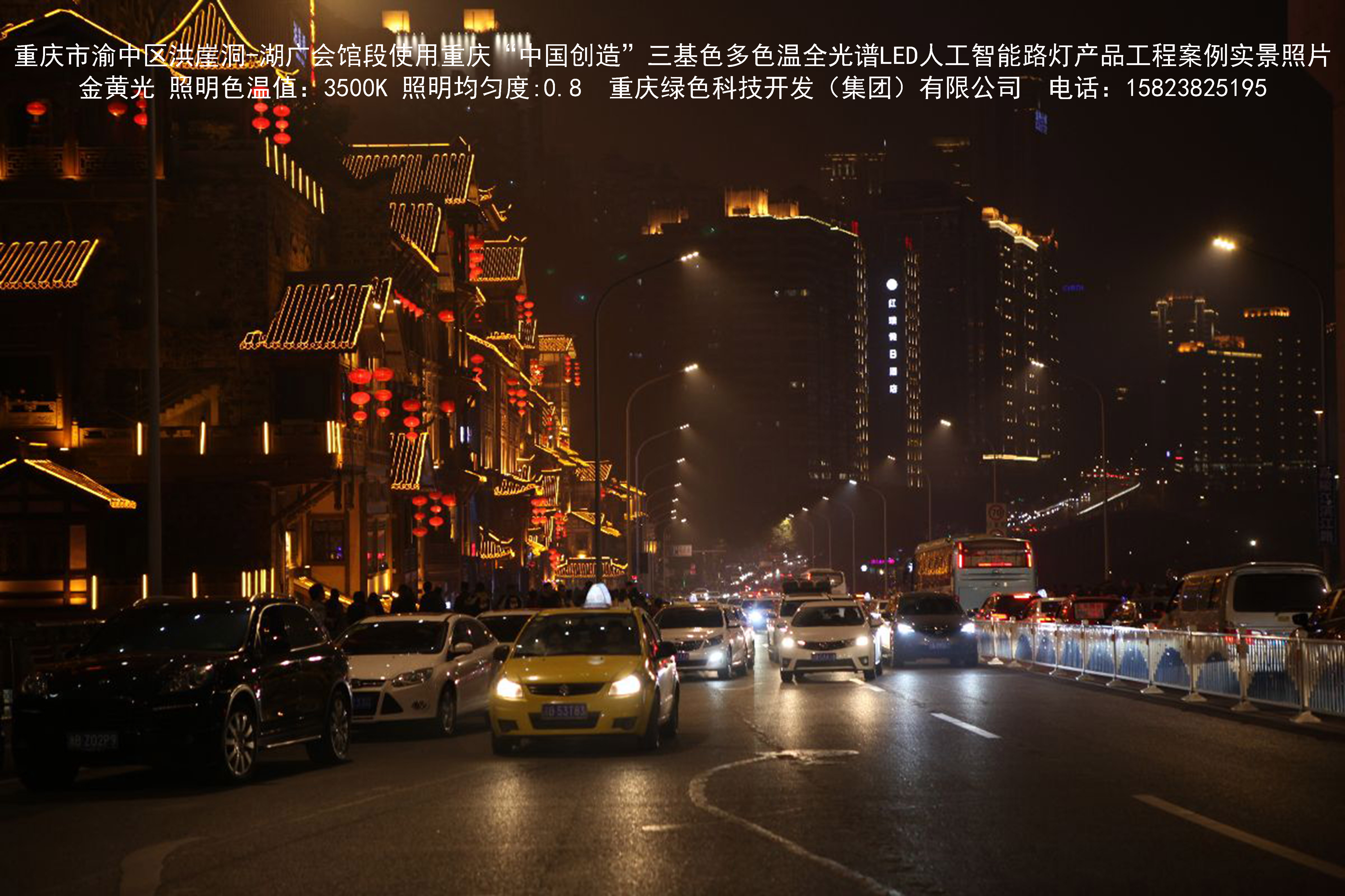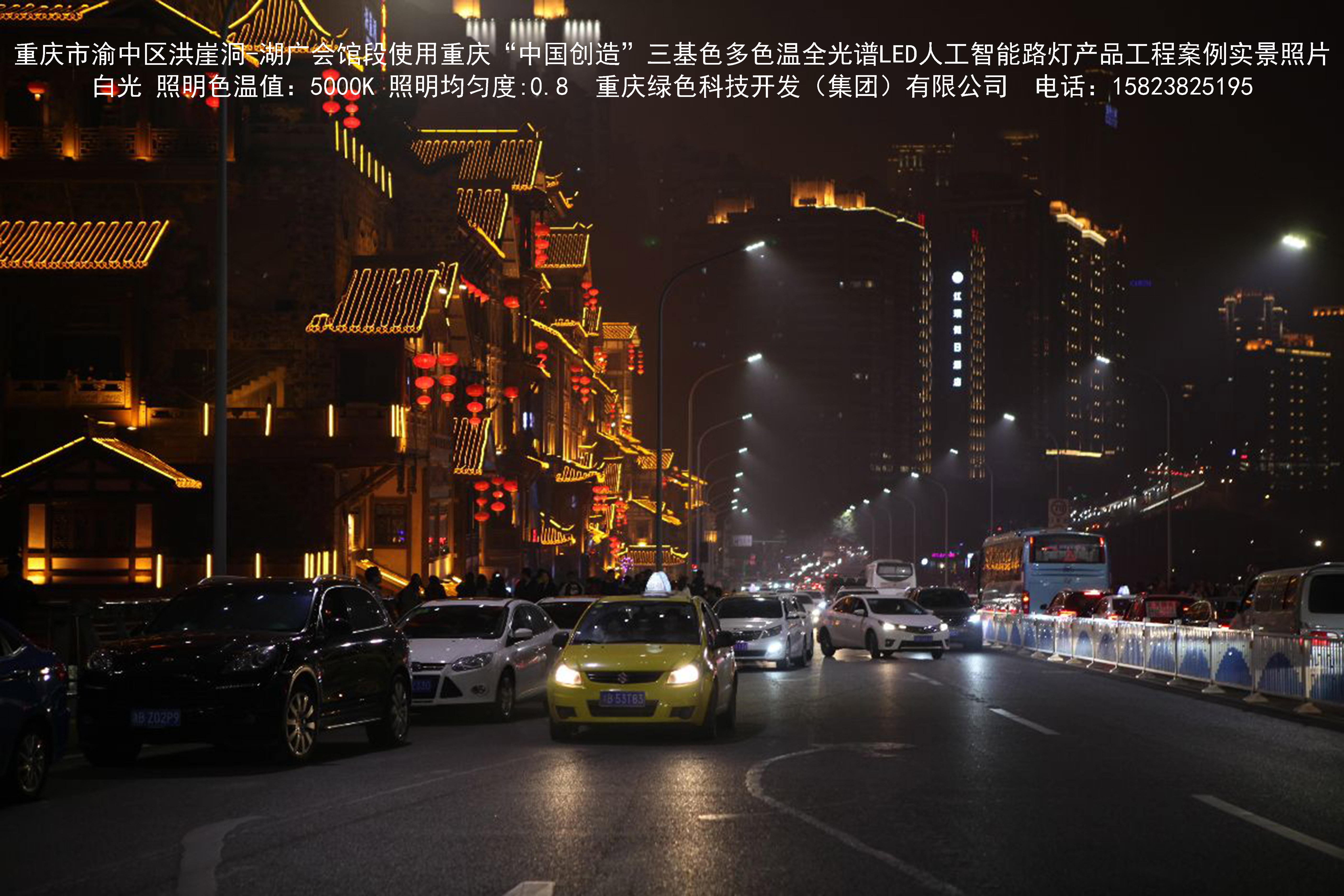重慶市渝中區(qū)洪崖洞-湖廣會館段使用我司研造的重慶“中國創(chuàng)造” 三基色多色溫全光譜LED人工智能路燈產(chǎn)品工程案例
