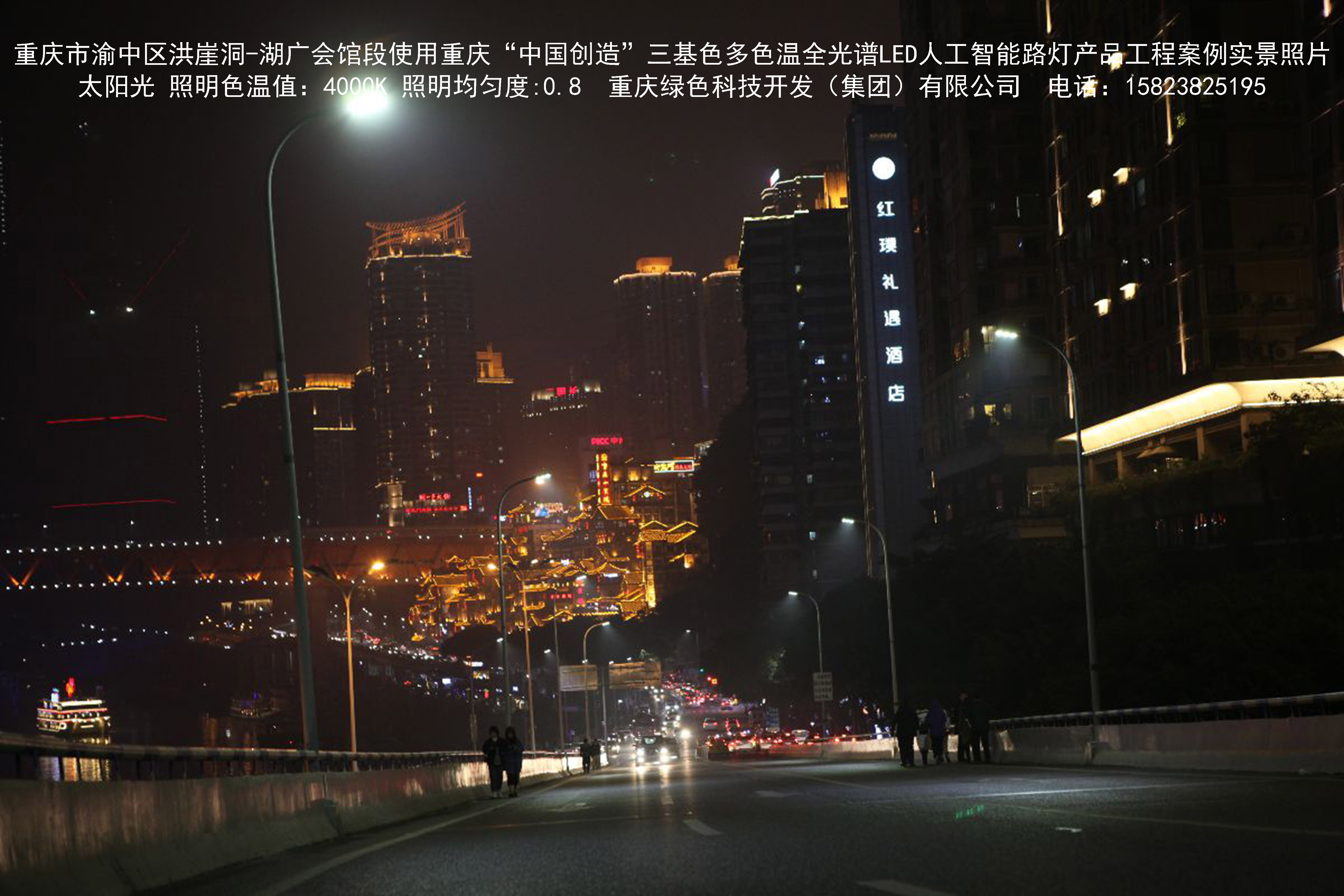 2018年12月,重慶市城市照明管理局使用我司自主研發(fā)制造的重慶“中國創(chuàng)造”三基色多色溫全光譜LED人工智能路燈系列產(chǎn)品,實施了渝中區(qū)市政設施品質(zhì)提升工程。該工程已全面竣工。工程實施后,極大地提高了城市照明清晰度、燈光均勻度、舒適度。通過智能終端實現(xiàn)單燈感知、線纜防盜報警,與原高壓鈉燈相比,節(jié)能率60%以上,有效解決了關(guān)閉控制回路或間隔關(guān)燈方式造成的照明暗區(qū),確保行人和車輛通行的安全,實現(xiàn)城市路燈照明系統(tǒng)的智能化管理,推進了智慧城市建設。