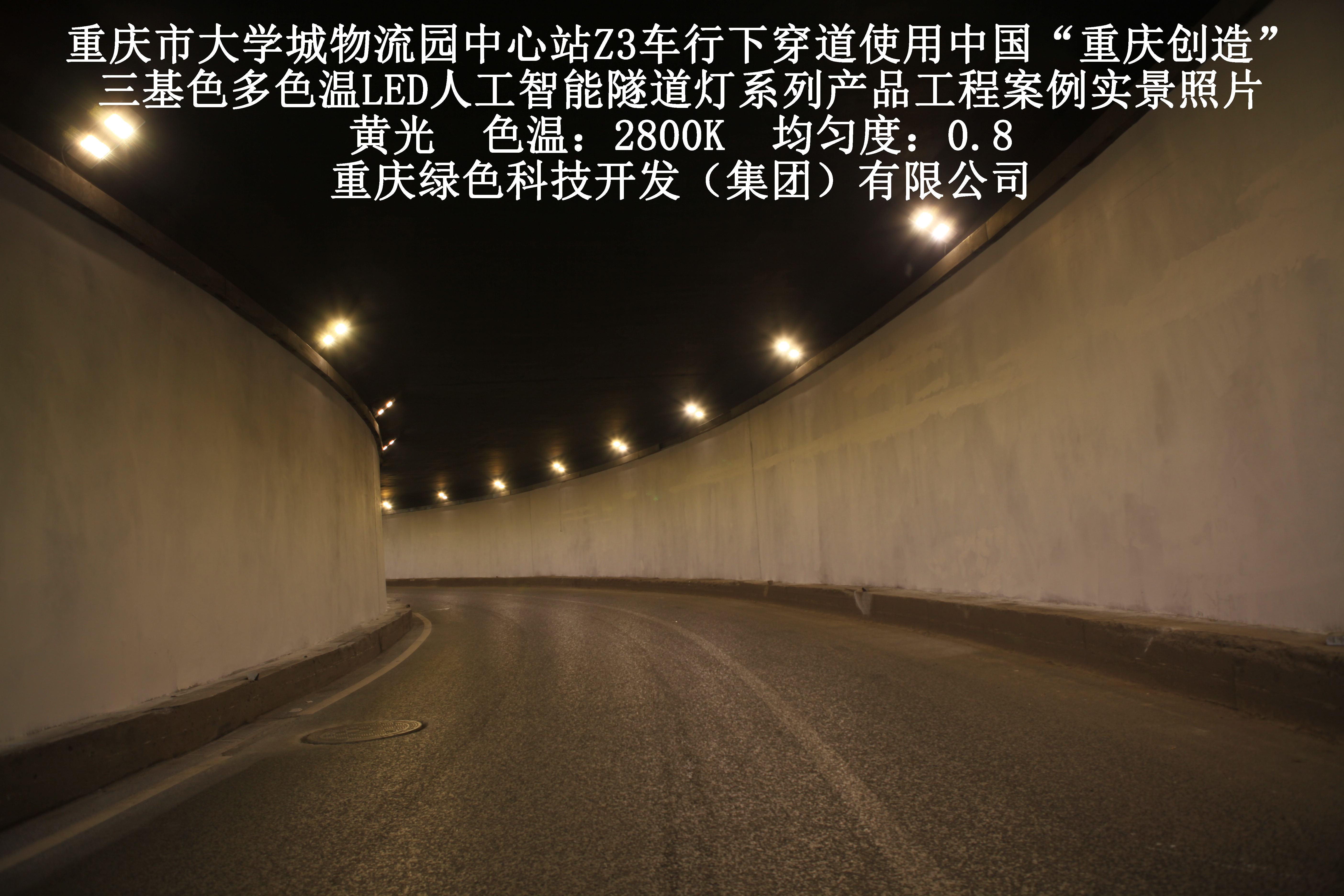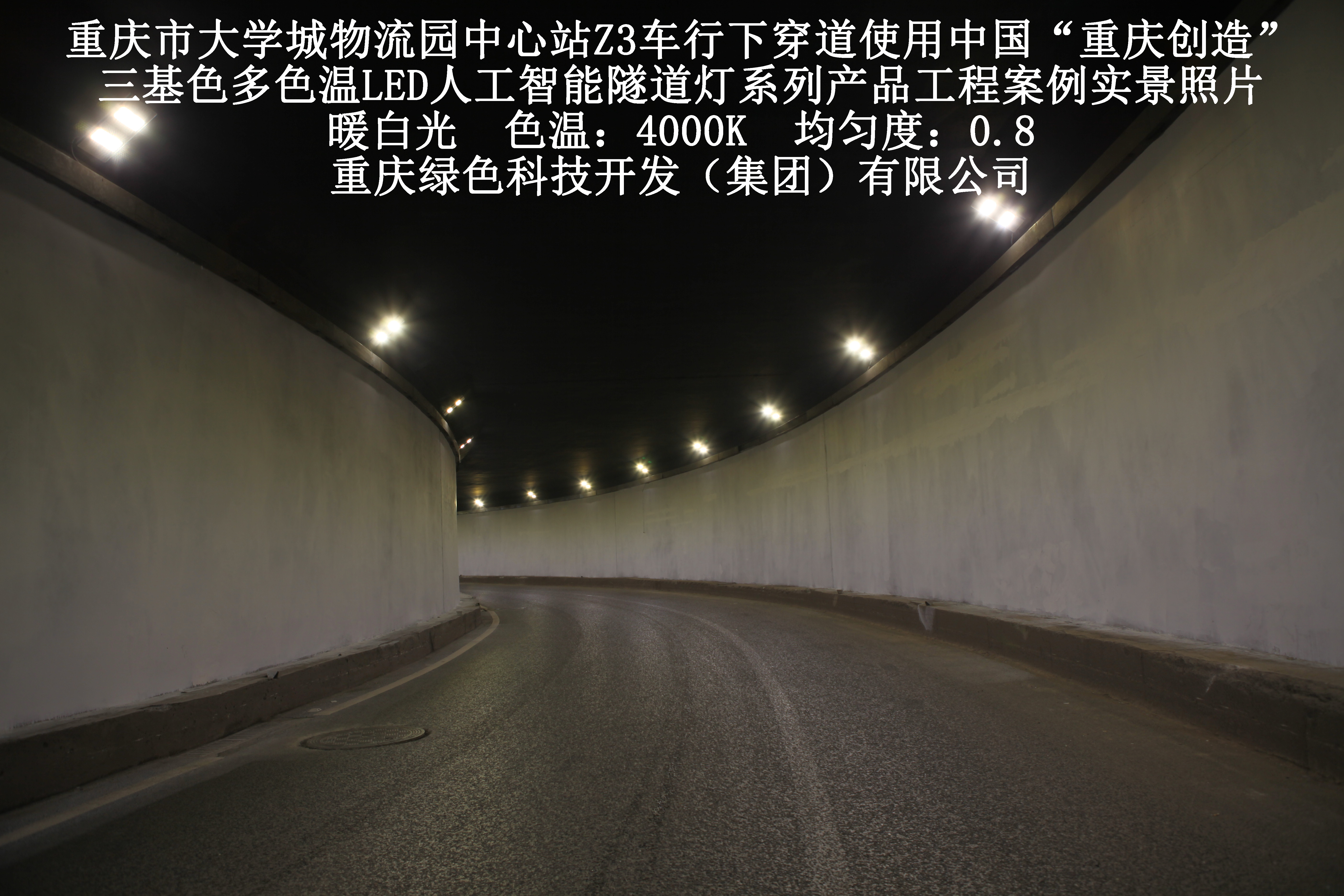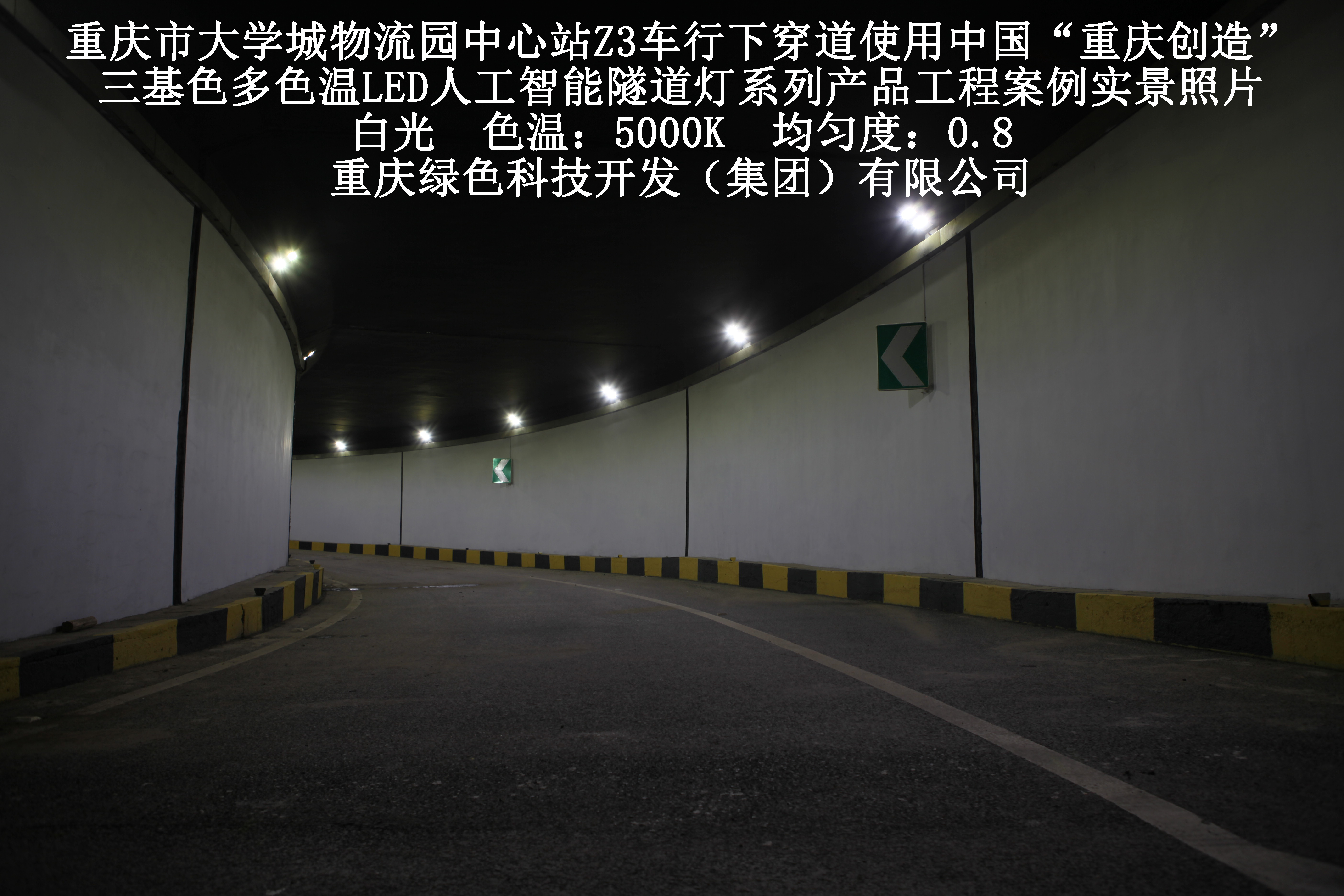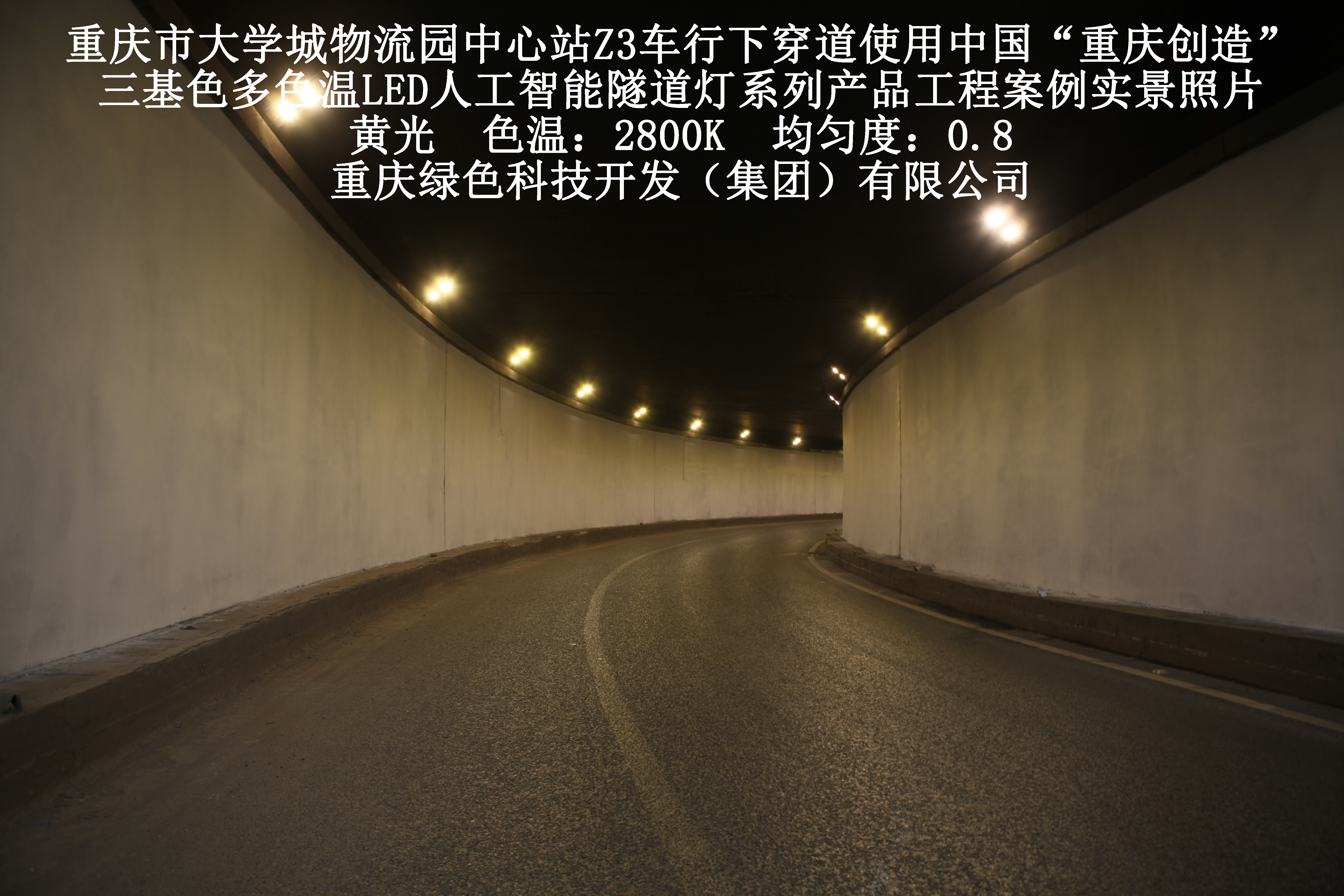 重慶市大學城物流園中心站Z3車行下穿道使用我司研造三基色多色溫LED人工智能隧道燈產(chǎn)品案例